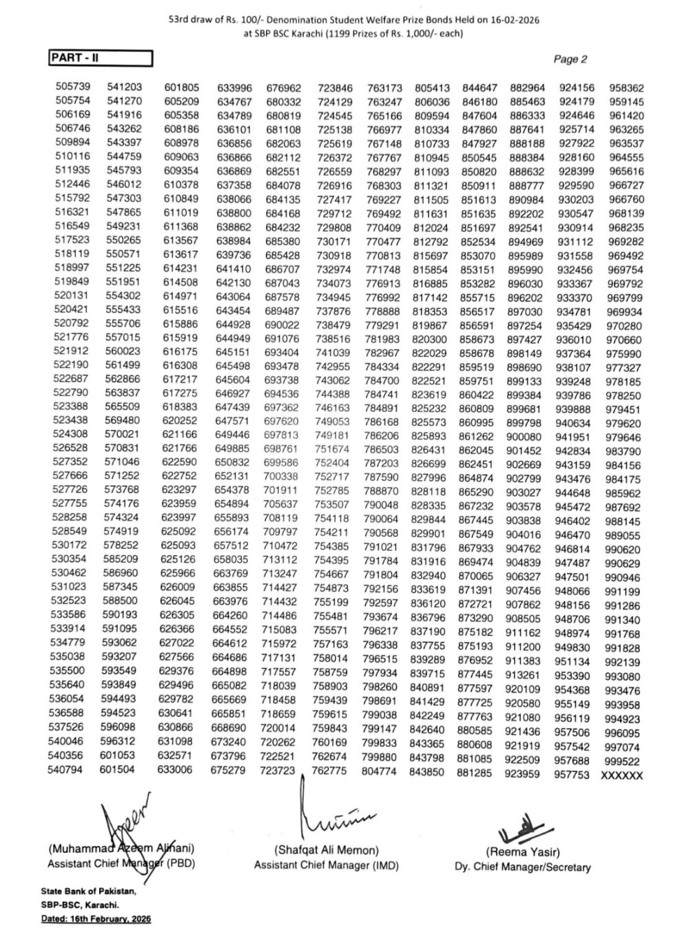 - 16 February 2026 – Karachi (Draw #53)