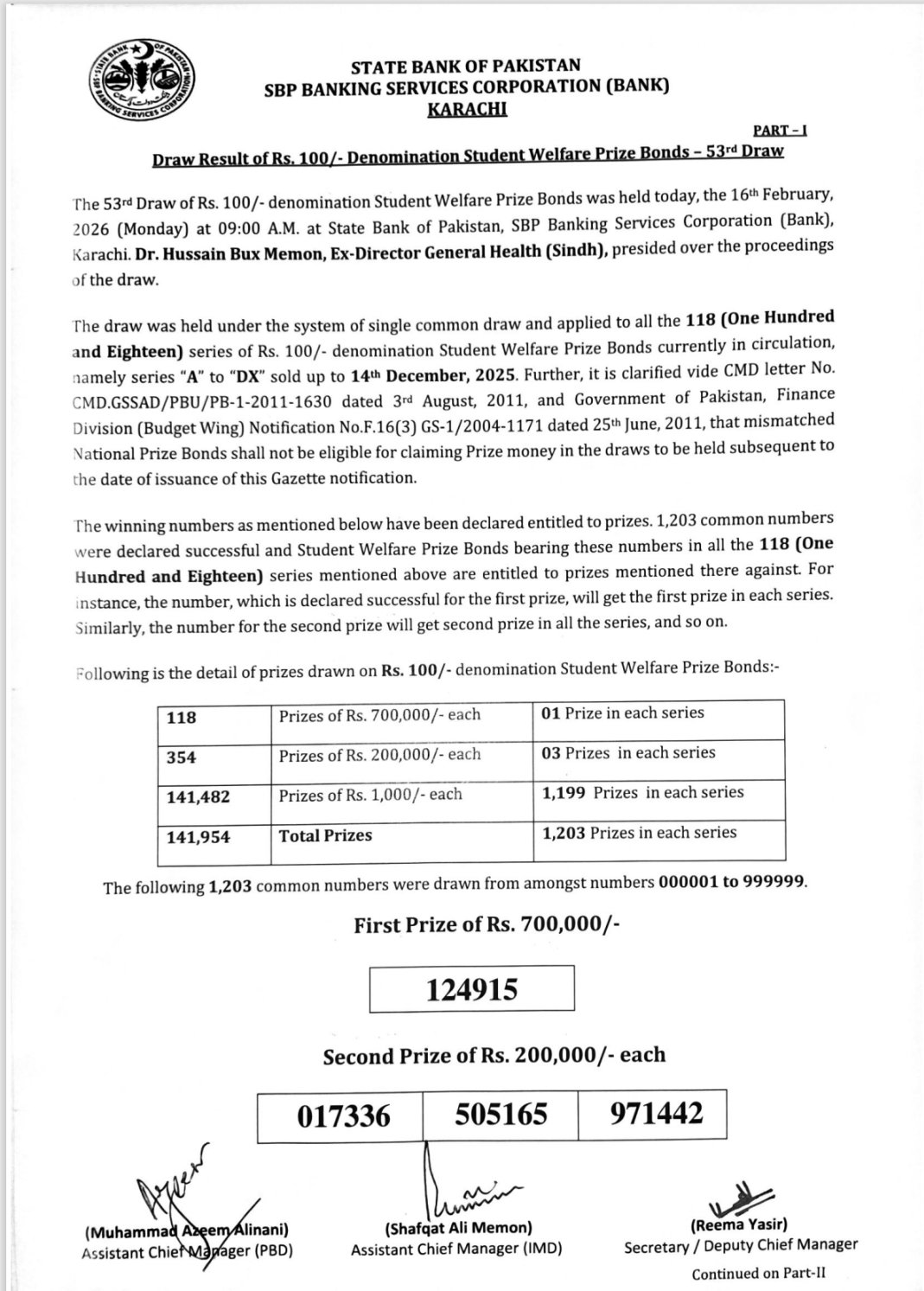 100 Prize Bond Result Today Complete List | Draw #53 Karachi | 16 February 2026