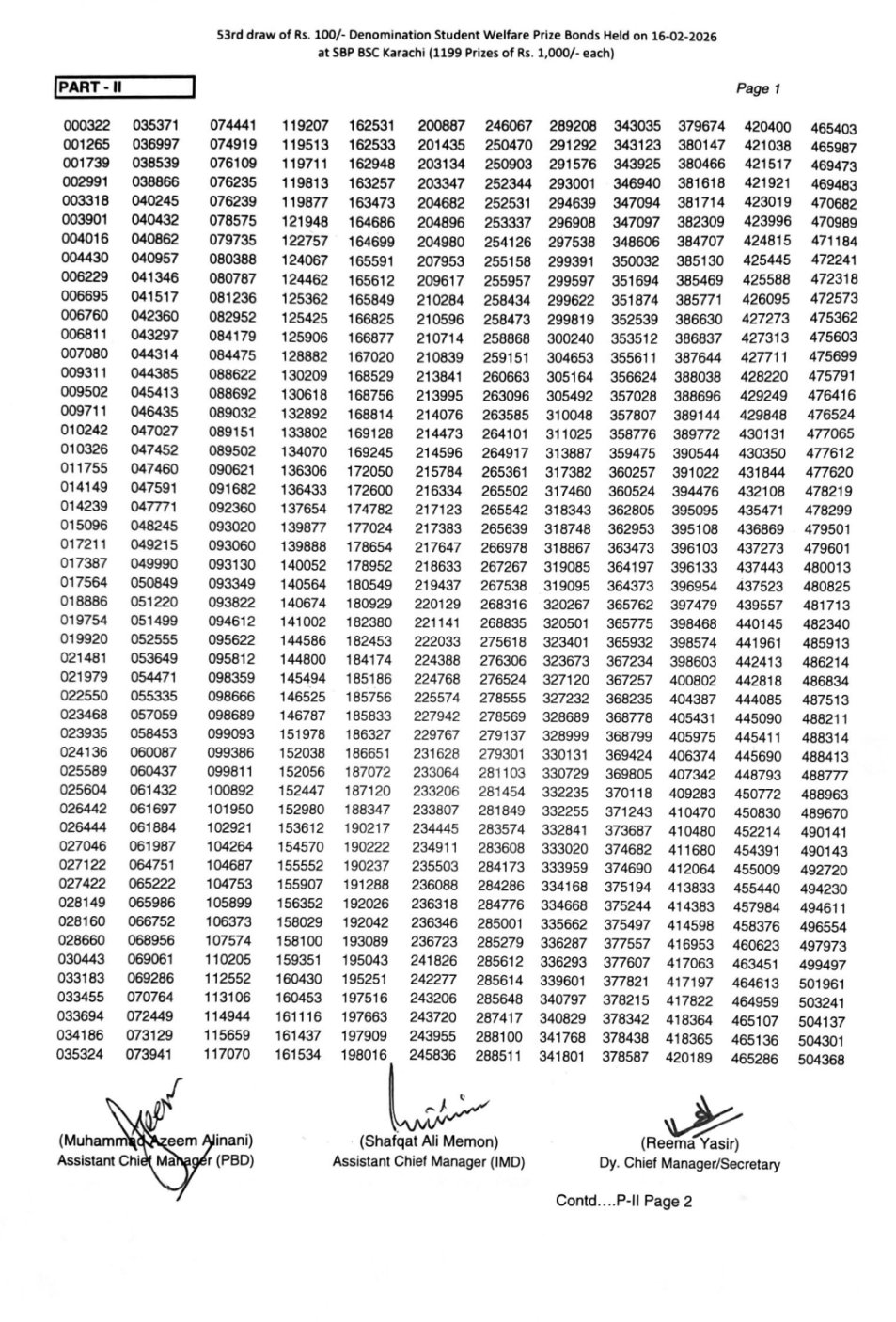 - 16 February 2026 – Karachi (Draw #53)