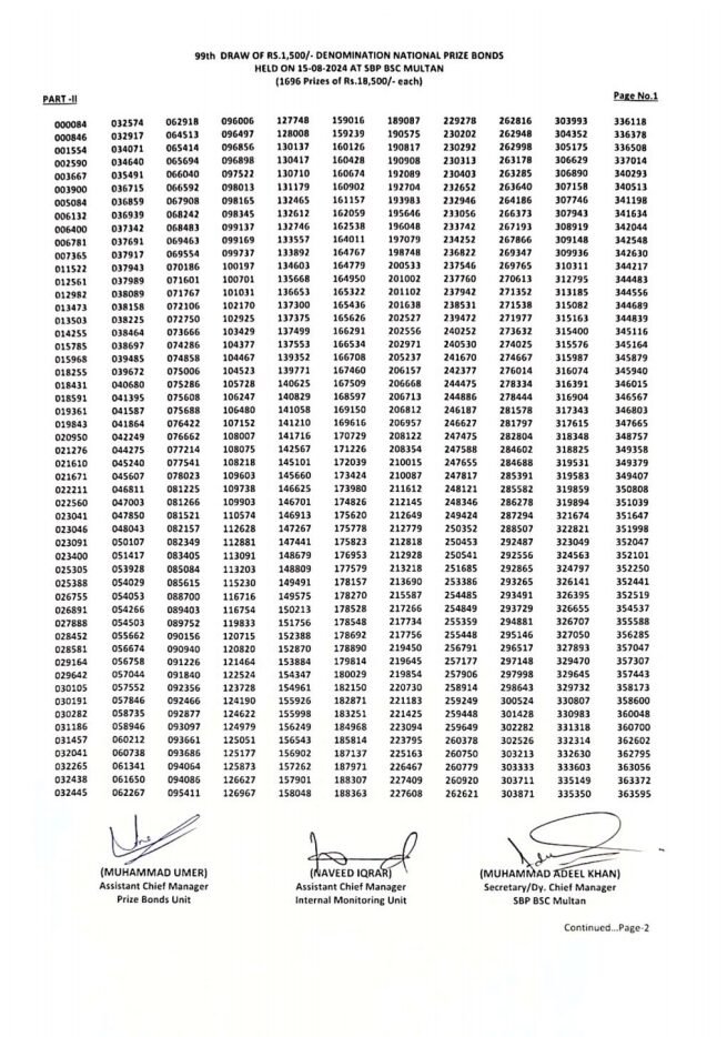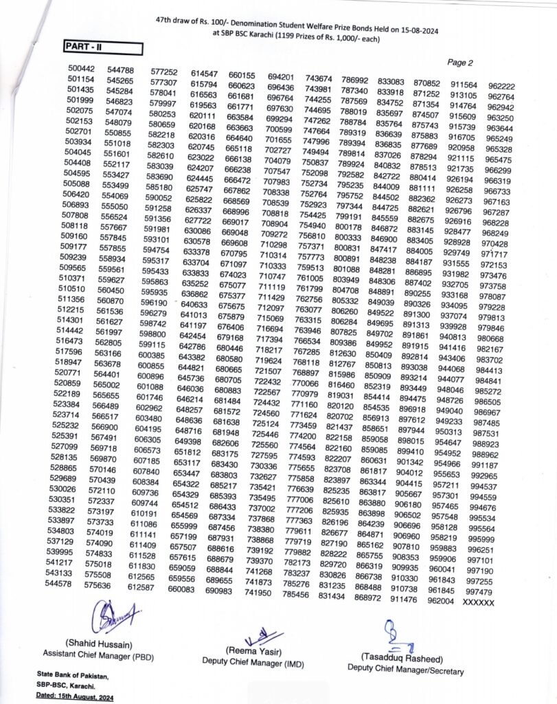 پرائز بانڈ لسٹ 1500, Click here to check the complete 1500 prize bond list 2024 August 15, 2024. پندرہ سو والے پرائز بانڈ کی لسٹ, پرائز بانڈ لسٹ 1500, If you’re searching for the latest updates on the prize bond 1500, you can find the prize bond 1500 list 2024 online. For a convenient prize bond 1500 online check, visit our site to access the prize bond 1500 online check 2023 results. Stay updated with Hamariweb prize bond 1500 information and check the draw prize bond 1500 results regularly. If you want to know the prize bond 1500 result today, follow our guide on how to check 1500 prize bond online. The 1500 prize bond list 2024 is available for viewing, and you can also download the 1500 prize bond list 2024 pdf download for your records. For comprehensive information, including the 1500 prize bond draw, ensure to check our detailed resources.