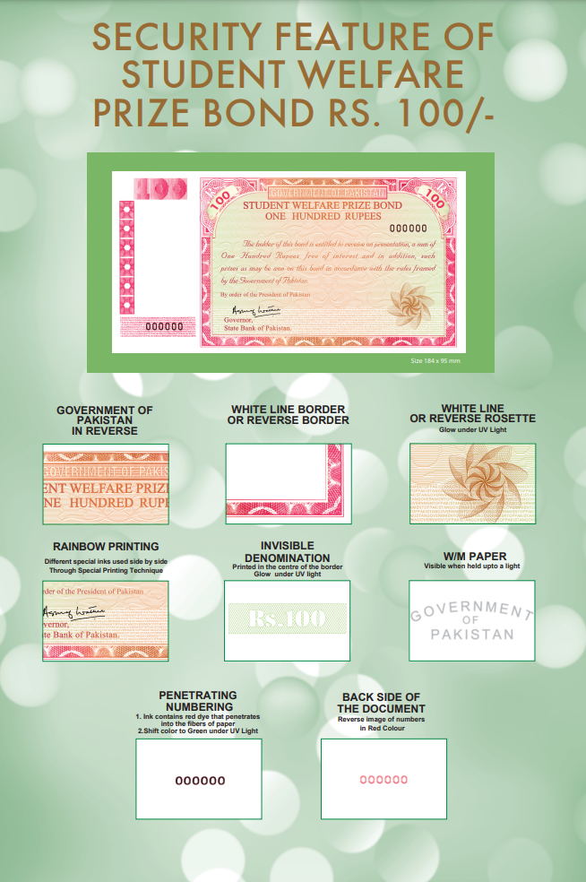 National Prize Bonds are a popular investment and savings tool in Pakistan, issued by the Central Directorate of National Savings (CDNS) and regulated by the State Bank of Pakistan (SBP). To ensure the authenticity of these bonds and prevent counterfeiting, each prize bond incorporates several advanced security features. This article highlights the key security features of Rs. 100, Rs. 200, Rs. 750, and Rs. 1500 prize bonds.
