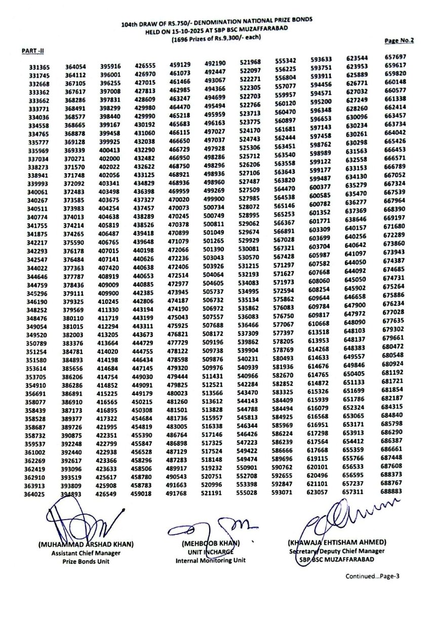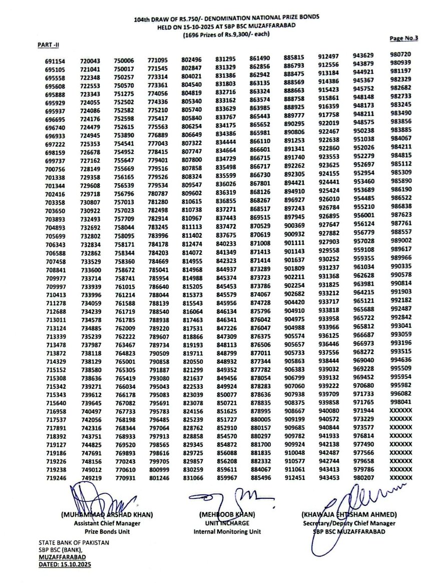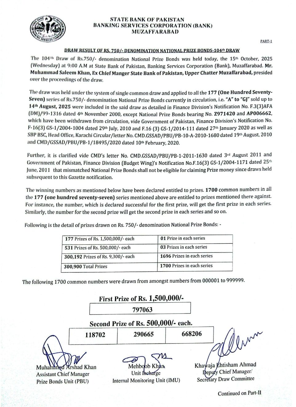 750 Prize Bond Draw No. 104 – Muzaffarabad (October 15, 2025)
